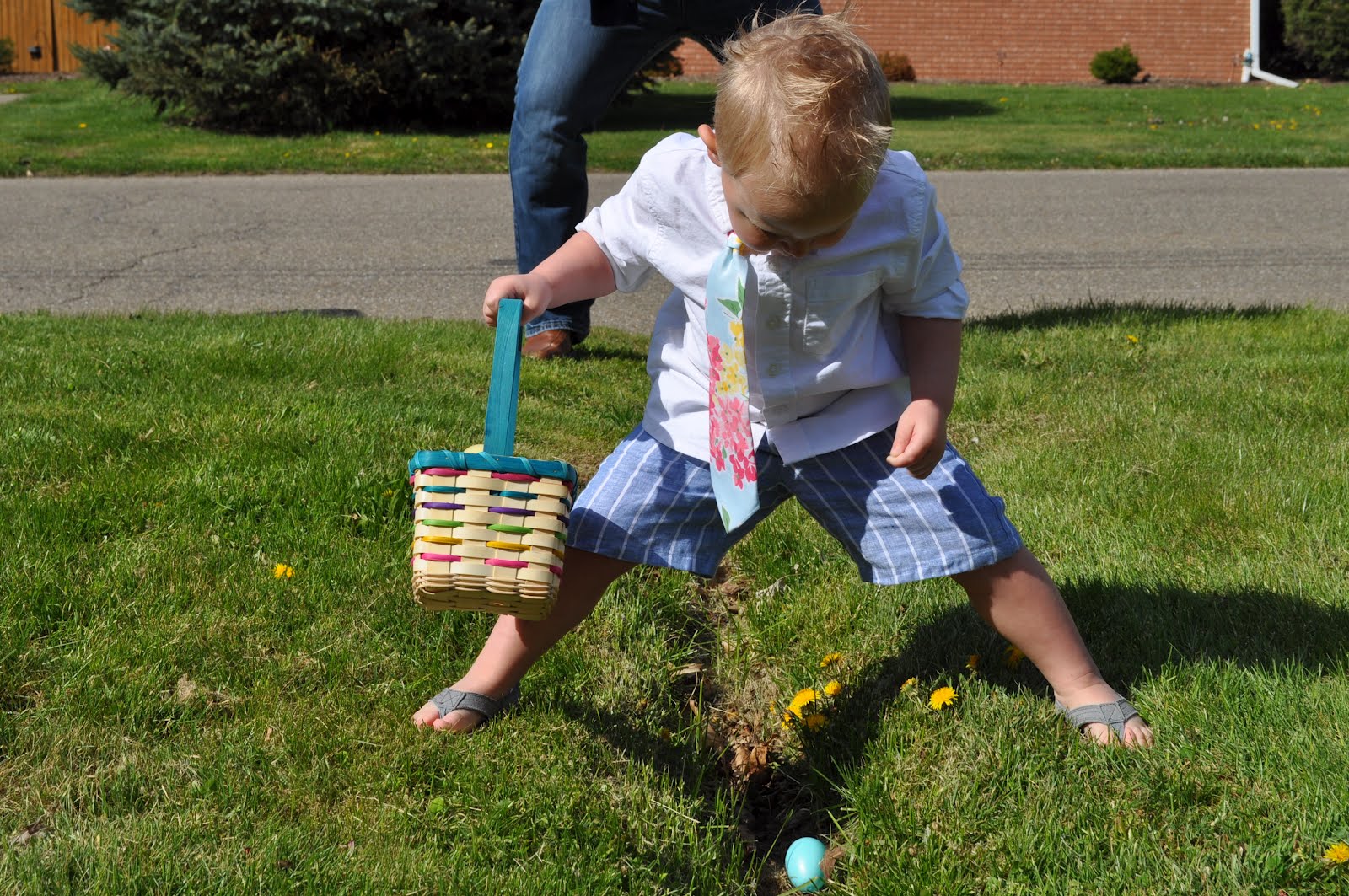 The eggs in the ditch were the best to watch him grab. He would spread his legs over the ditch and bend down to get the egg. Hysterical. We threw a couple extra ones in there just to watch him try to retrieve them.