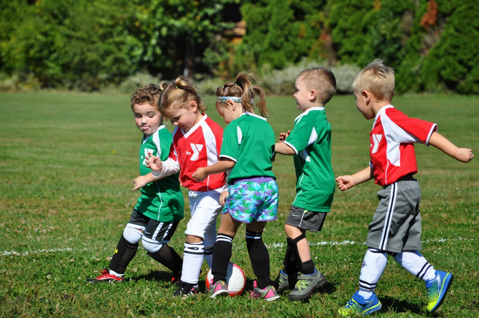 The first Saturday was a meet & greet and practice. Cooper's Coach's name is Mario - score! Cooper's head completely jerked when he heard the name Mario and was excited. To top it off, they are the red team!